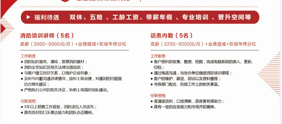 贵州省政安消防知识宣传服务中心遵义分中心高薪诚聘教官、话务人员!!!